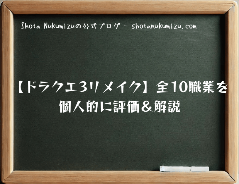 ドラクエ3(HD2D) 【ドラクエ3リメイク】全10職業を個人的に評価&解説 Date: 2025年1月20日Author: Shota Nukumizu 0 コメント こんにちは、Shotaです。 こちらの記事は新ブログの記事へ移行しましたので、詳細な情報はこちらへアクセスしてください。 共有: クリックして X で共有 (新しいウィンドウで開きます) X Facebook で共有するにはクリックしてください (新しいウィンドウで開きます) Facebook いいね 読み込み中… 関連