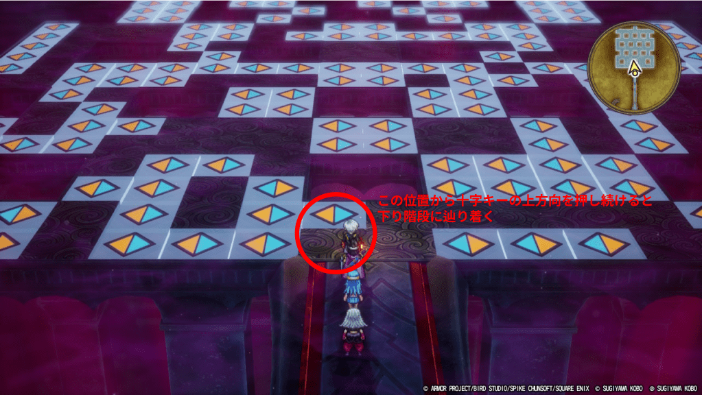 地下2階の回転床のエリアは下記の画像のとおりに従っていれば簡単に踏破できます。