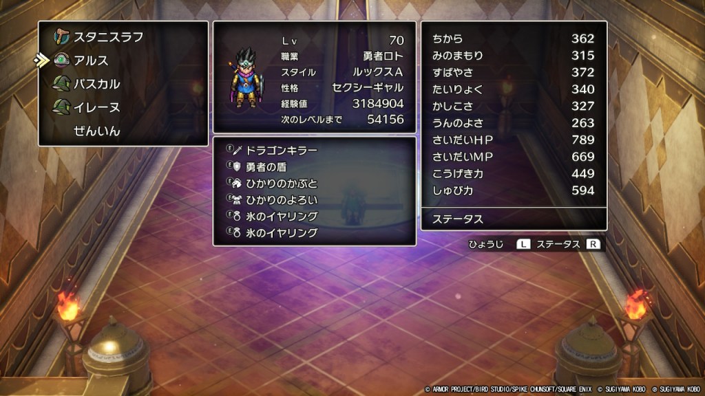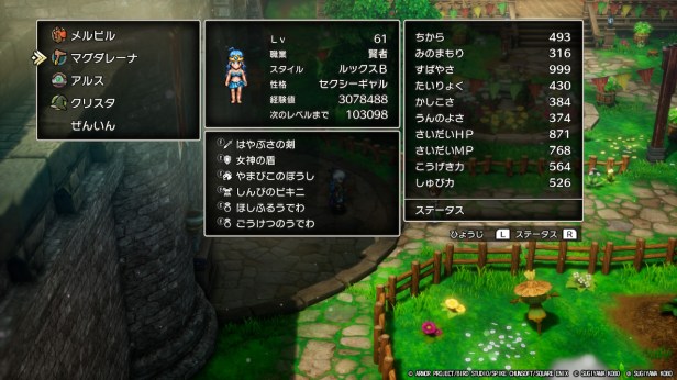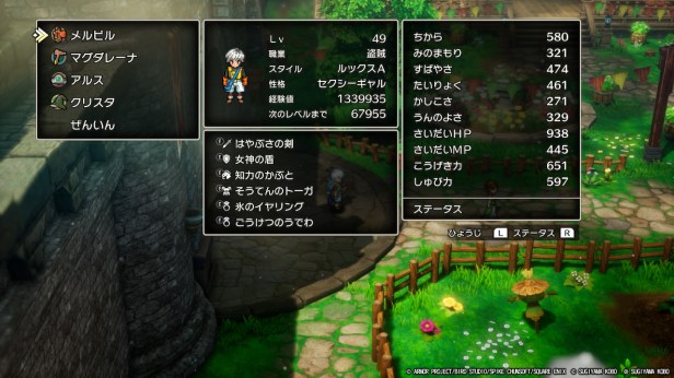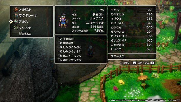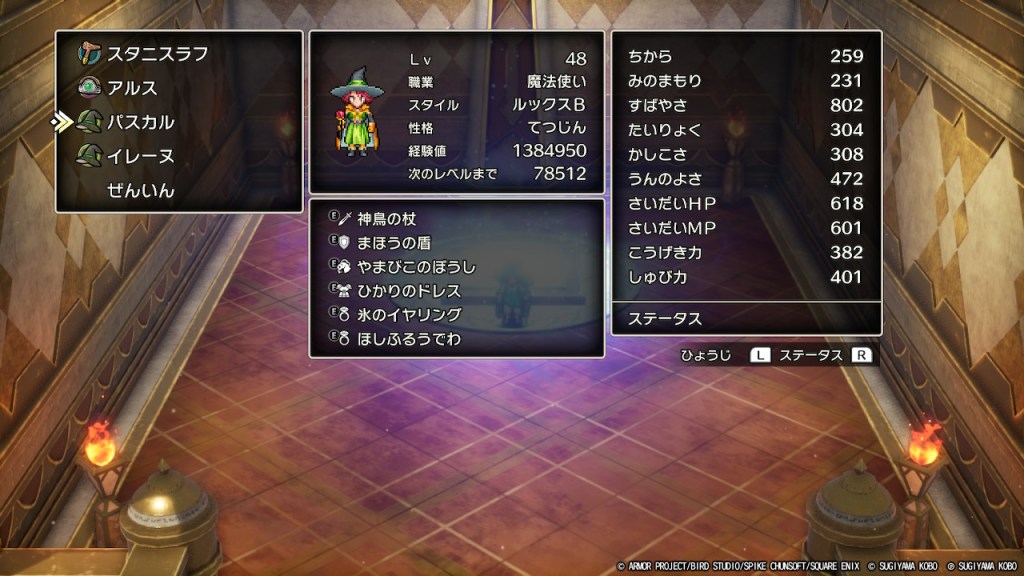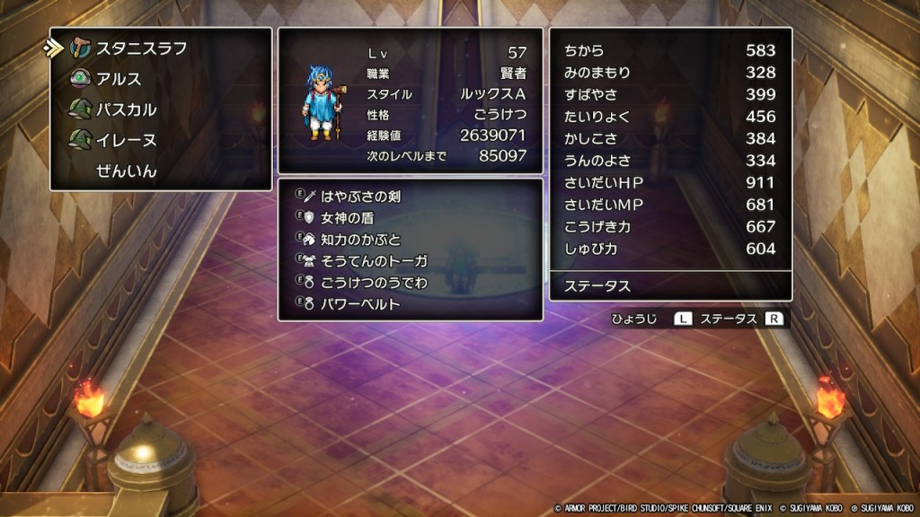 アタッカーの、はやぶさの剣を装備した状態で攻撃力を650以上、かつやまびこラリホー役に先制されずにすばやさを調整してうんのよさも確保するような調整がかなり難しい。周回プレイや試練の神殿の攻略難易度を考えると魔法使いを2人置いてアタッカーを賢者(盗賊)に集中させるのがいいのかもしれませんね。